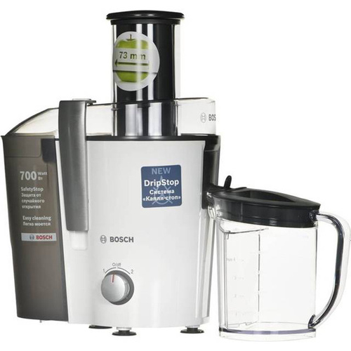 آبمیوه گیری بوش مدل MES25A0، از جمله محصولات با کیفیت و با طراحی زیبای این شرکت است. این آبمیوهگیری دارای دو مخزن آبمیوه و تفاله است که هر کدام به گونهای مجزا از دستگاه در کنار آن قرار گرفتهاند. بدنهی پلاستیکی و سفید این دستگاه در کنار سایر قطعات با رنگ تیره این دستگاه را زیباتر کرده است. تیغهی اصلی آبمیوه گیری بوش مدل MES25A0 از جنس استیل ضد زنگ است و دهانهی دستگاه هم از قطر مناسبی برخوردار است. علاوه بر فیلتر دستگاه که به راحتی قابل شستشو است، سایر لوازم جانبی آن هم قابلیت شستشو در ماشین ظرفشویی را دارند. برای تمیز کردن فیلتر این آبمیوه گیری یک برس در اختیار خریداران آن قرار خواهد گرفت. از جمله لوازم جانبی آبمیوه گیری بوش مدل MES25A0 میتوان به مخزن پلاستیکی آبمیوه که شفاف و دارای درجه بندی است و همچنین مخزن تفاله آبمیوه گیری اشاره کرد که به راحتی میتوان آنها را پس از پر شدن از دستگاه جدا کرده و با توقفی کوتاه در عملکرد دستگاه، آنها را خالی و برای ادامه فرآیند آبگیری روی دستگاه قرار داد. آبمیوه گیری بوش مدل MES25A0 دستگاهی تک کاره محسوب میشود و در 2 سرعت مختلف توان انجام فرآیند آبمیوه گیری را دارد. پایه های ضد لغزش زیر دستگاه مانع از لرزش و جابجایی حین فعالیت آن میشوند. لوله خروجی این دستگاه و پارچ آبمیوه طوری طراحی شدهاند تا آبمیوه مستقیم وارد پارچ شده و چکهای ایجاد نشود. ظرفیت پارچ این دستگاه در حدی است که 3 تا 4 لیوان کوچک یا متوسط آبمیوه را در خود جای میدهد.