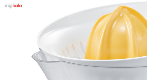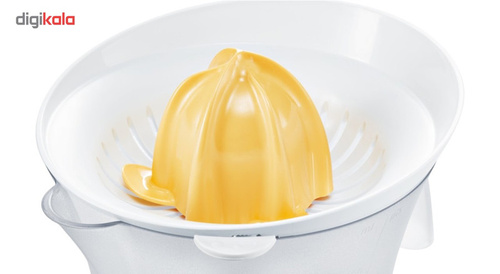 آب مرکبات گیری بوش مدل MCP3500 از محصولات کوچک و کاربردی و همچنین پرفروش موجود در بازار است که کیفیت بالایی دارد. این محصول امکان آبگیری تعداد زیادی پرتقال یا لیمو یا سایر مرکبات را دارد، چرا که ظرفیت حجم آن کمی کمتر از 1 لیتر است. آب مرکبات گیری بوش مدل MCP3500 بدنهی پلاستیکی و با کیفیتی دارد که هم زیبا طراحی شده و ترکیب رنگهای روشن سفید و زرد جذابیتی خاصی به آن بخشیده است. امکان تهیهی آبمیوه با میزان پالپ مختلف توسط صافیهای این دستگاه وجود دارد. نحوهی قرارگیری مخزن و پایه در این دستگاه طوری طراحی شده است تا به درستی و به راحتی بتوان از آنها استفاده کرد. دسته ظرف این محصول هم طراحی ارگونومیکی داشته و کار با آن را راحتتر میکند. در لبه پایینی این دستگاه شیاری قرار دارد تا کابل برق در آن جای گیرد. یک درپوش برای مواقعی که از دستگاه استفاده نمیشود در بستهبندی دستگاه وجود دارد تا روی مخروط و صافی قرار گیرد.